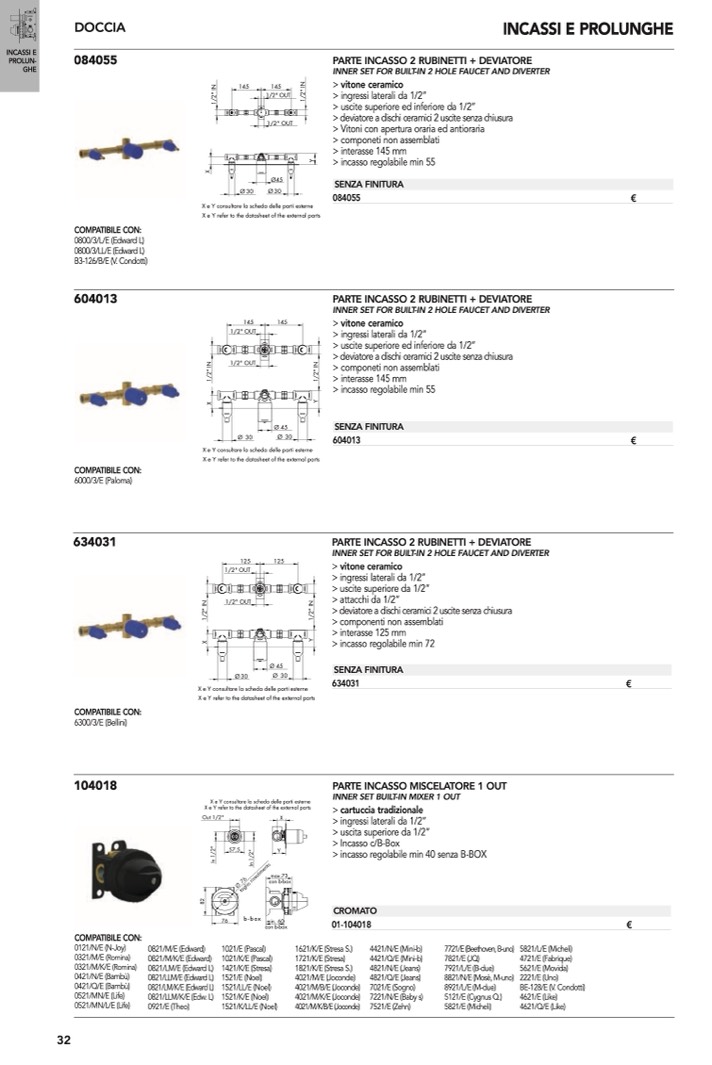 > uscite superiore ed inferiore da 1/2”