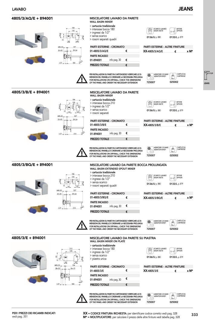 : per calcolare il prezzo delle altre finiture vedi tabella pag. 328