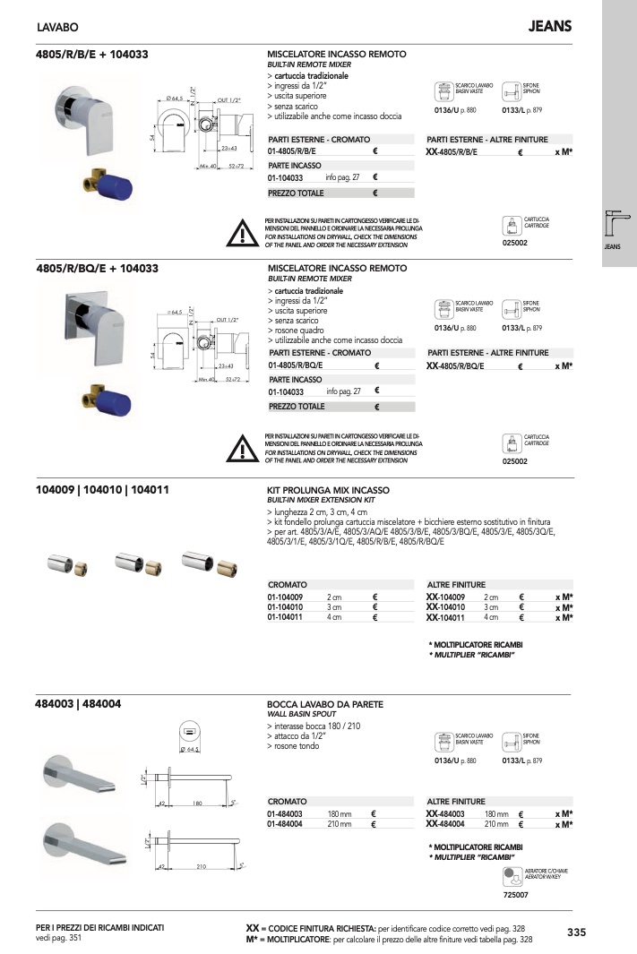 : per calcolare il prezzo delle altre finiture vedi tabella pag. 328