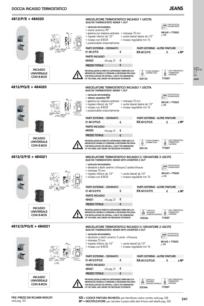 : per calcolare il prezzo delle altre finiture vedi tabella pag. 328