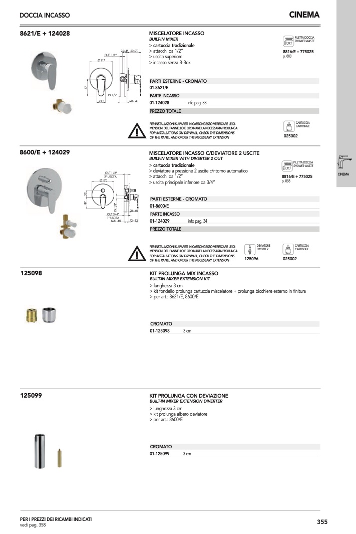 > kit fondello prolunga cartuccia miscelatore + prolunga bicchiere esterno in finitura