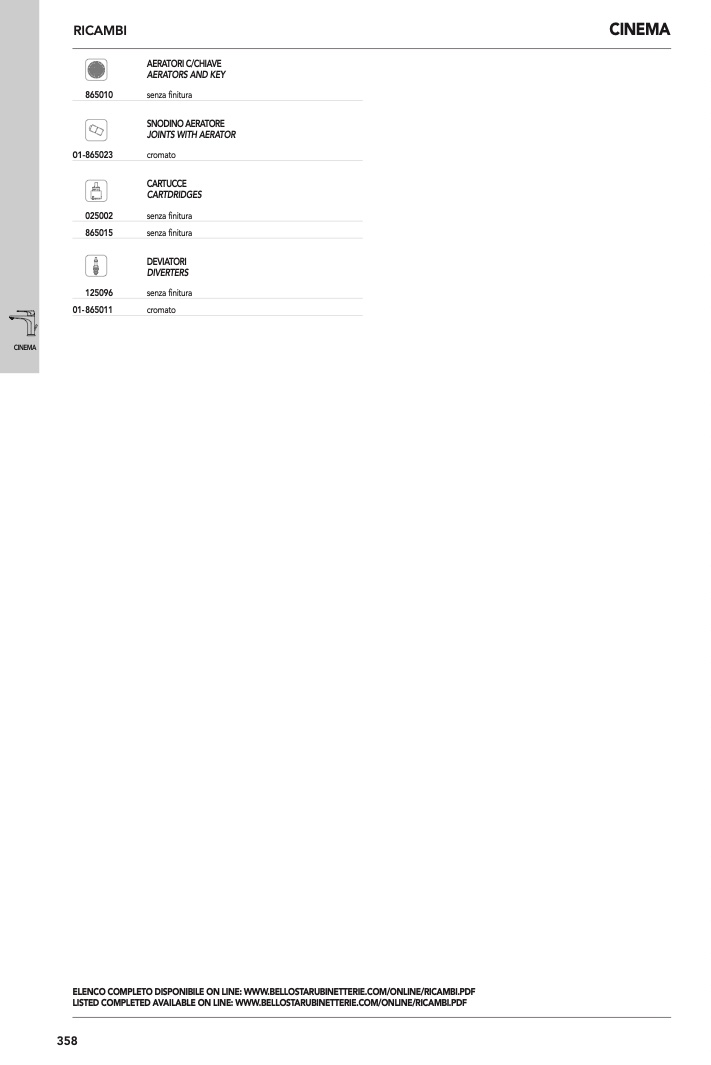 ELENCO COMPLETO DISPONIBILE ON LINE: WWW.BELLOSTARUBINETTERIE.COM/ONLINE/RICAMBI.PDF