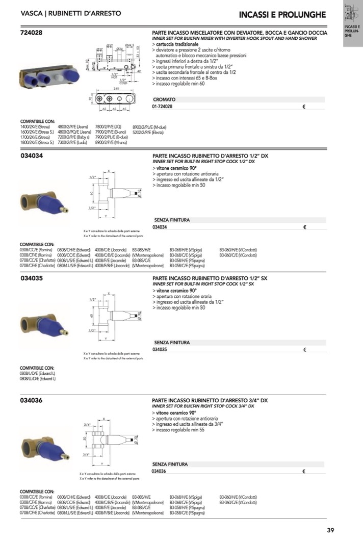 > ingresso ed uscita allineate da 3/4”