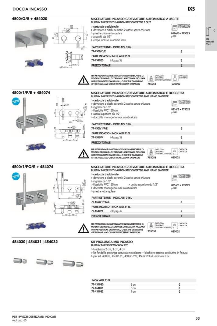 > per art. 4500/E, 4500/Q/E, 4500/1/P/E, 4500/1/PQ/E ordinare 2 pz