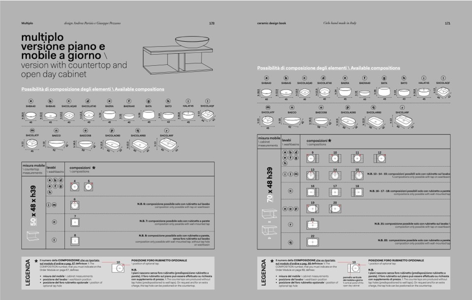 N.B. 16 - 17 - 18: composizioni possibili solo con rubinetto a parete