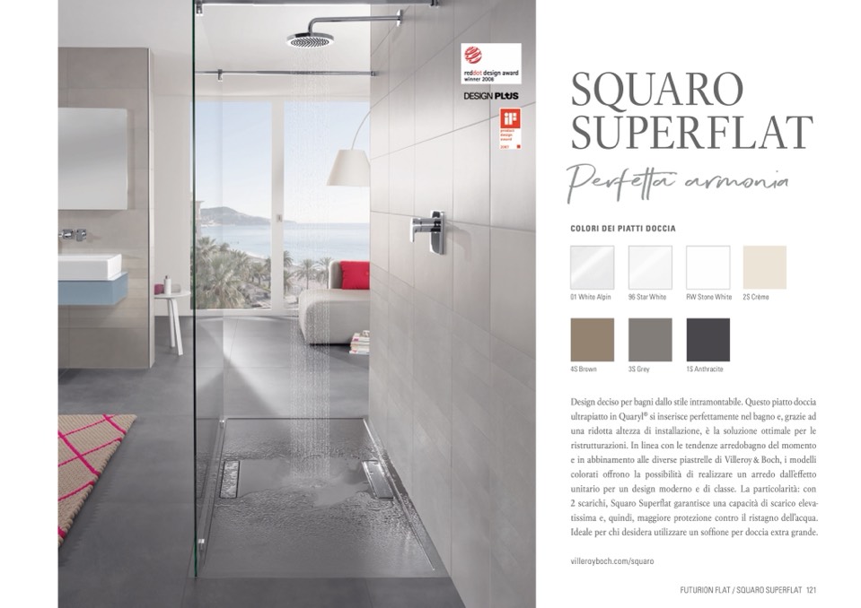 ultrapiatto in Quaryl® si inserisce perfettamente nel bagno e, grazie ad