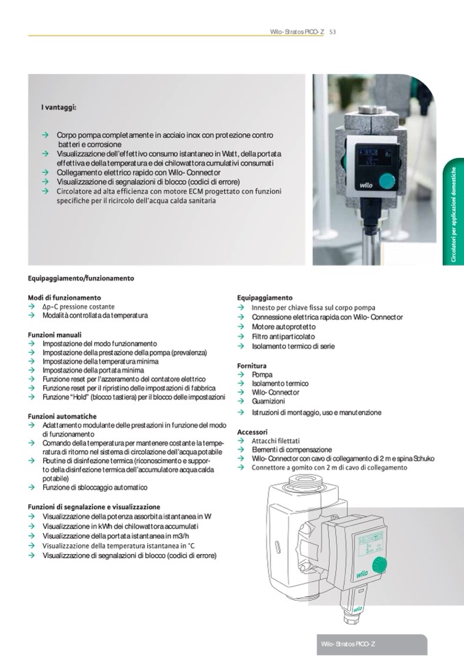 ratura di ritorno nel sistema di circolazione dell’acqua potabile