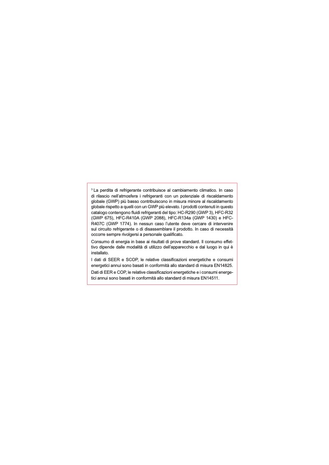 catalogo contengono fluidi refrigeranti del tipo: HC-R290 (GWP 3), HFC-R3
