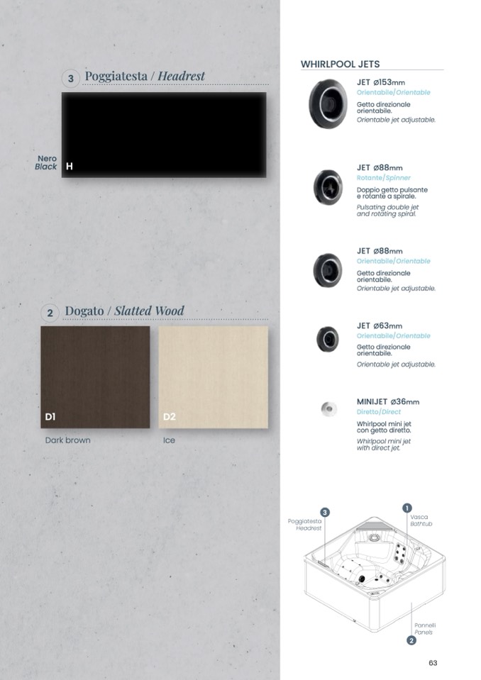 Orientable jet adjustable.