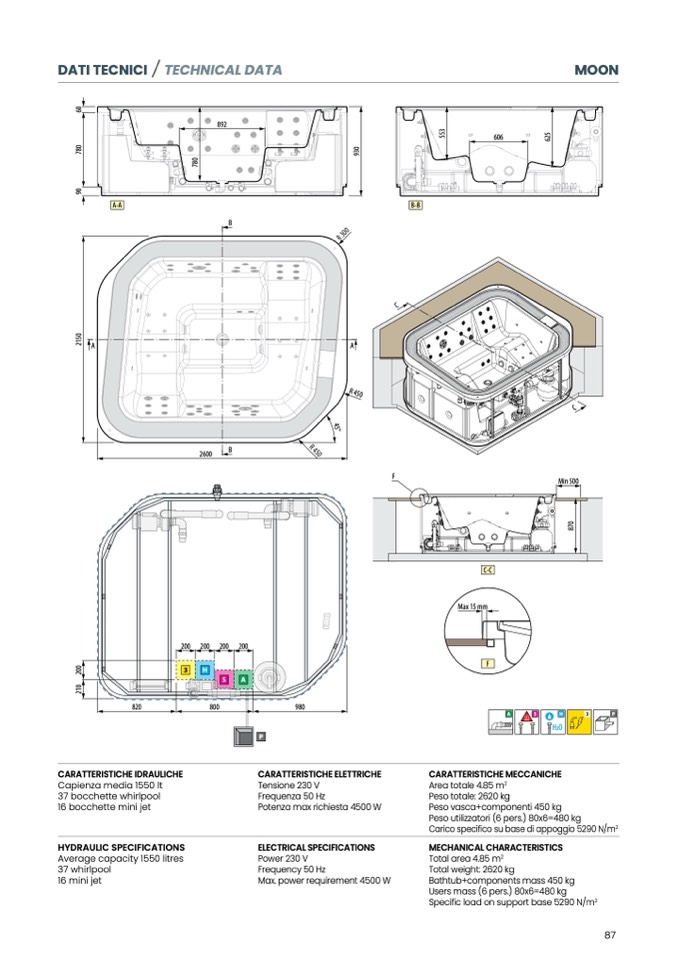Bathtub+components mass 450 kg