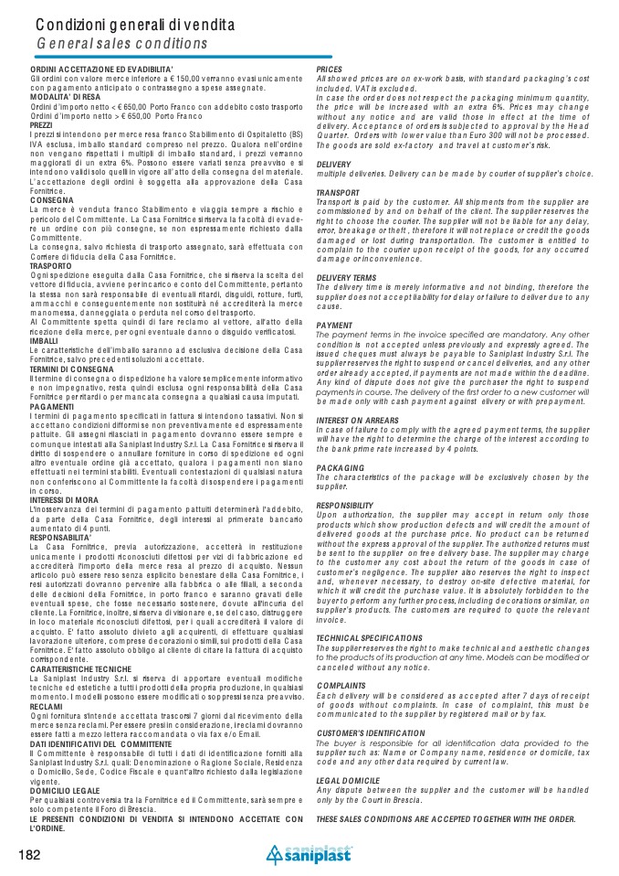 comunque intestati alla Saniplast Industry S.r.l. La Casa Fornitrice si riserva il