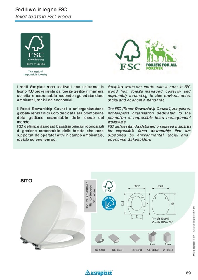 Saniplast seats are made with a core in FSC