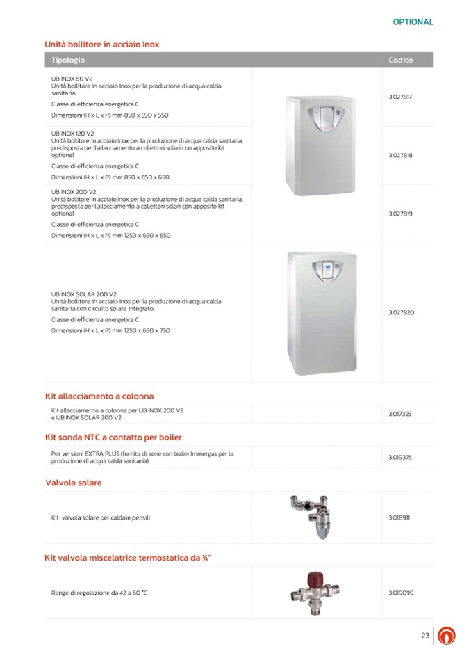 Per versioni EXTRA PLUS (fornita di serie con boiler Immergas per la