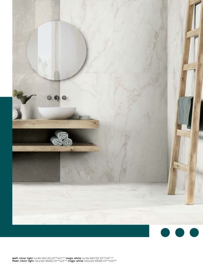 wall: silver light lucido 60x120 235/8”x471/4” magic white lucido 60x120 235/8”x471/4”
