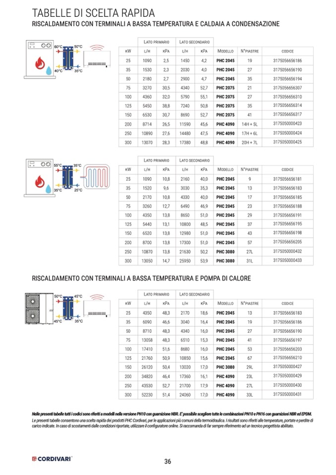 Le presenti tabelle consentono una scelta rapida dei prodotti PHC Cordivari, per le applicazioni più comuni della termoidraulica. I risultati sono riferiti alle temperature, portate e perdite di