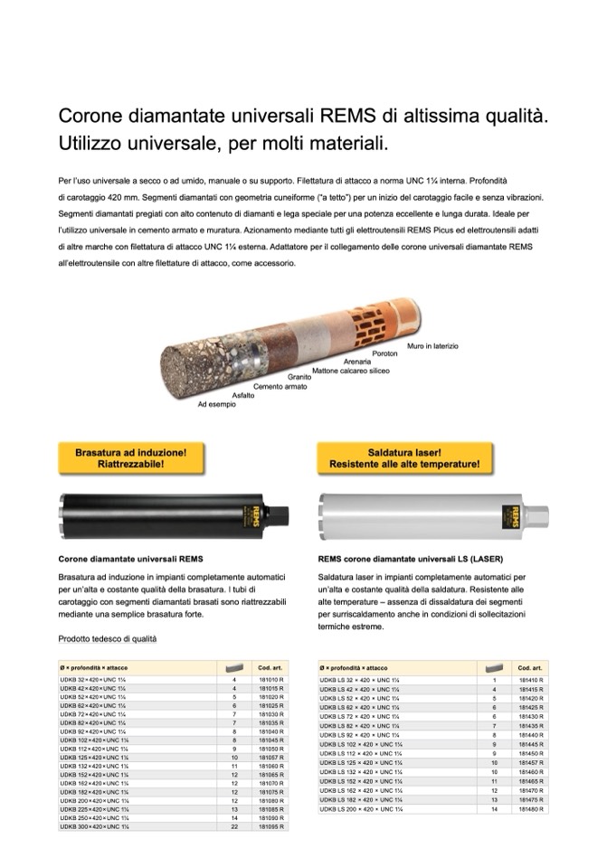 Corone diamantate universali REMS