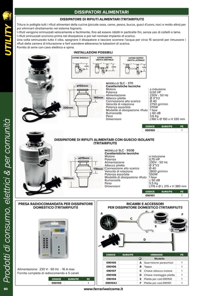 PER DISSIPATORE DOMESTICO (TRITARIFIUTI)