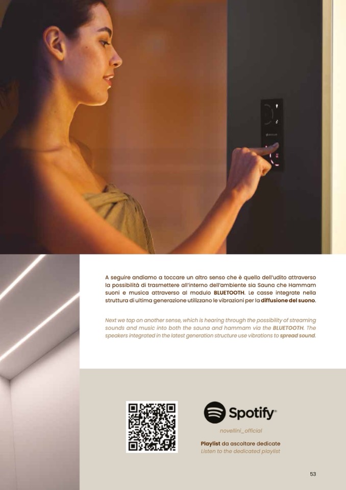 sounds and music into both the sauna and hammam via the BLUETOOTH. The