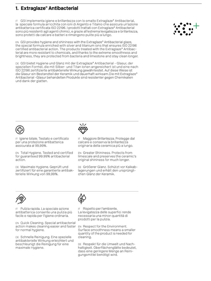 EN GSI provides hygiene and shininess with the Extraglaze® Antibacterial glaze,