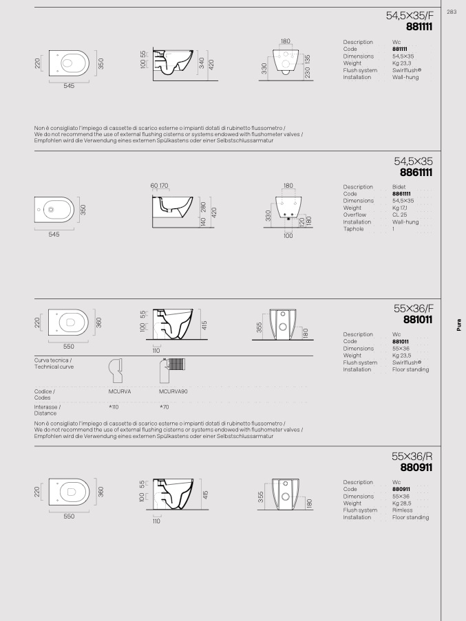 Non è consigliato l’impiego di cassette di scarico esterne o impianti dotati di rubinetto flussometro /