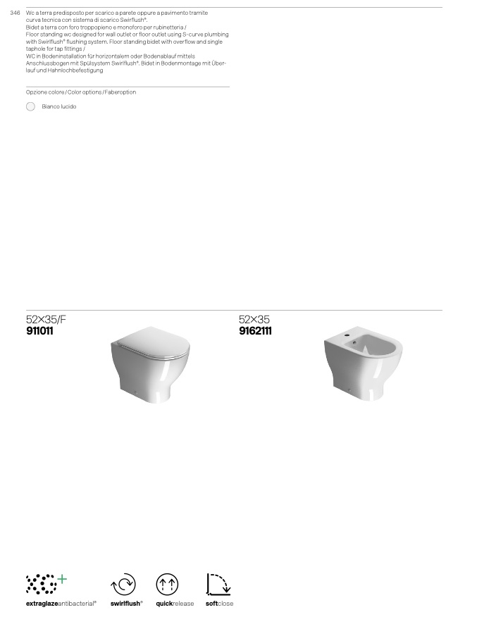 346 Wc a terra predisposto per scarico a parete oppure a pavimento tramite