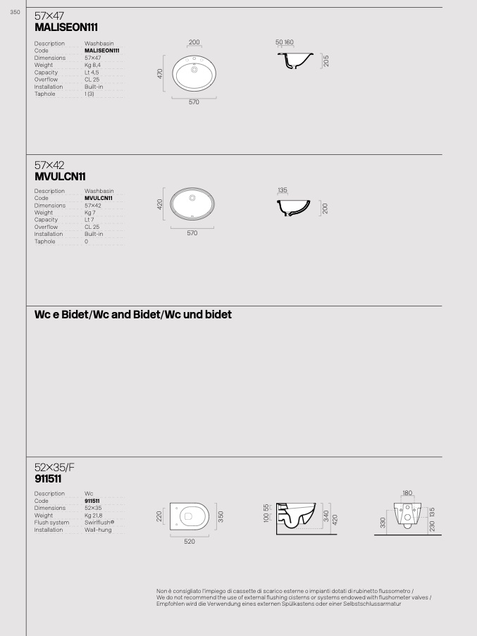 Non è consigliato l’impiego di cassette di scarico esterne o impianti dotati di rubinetto flussometro /