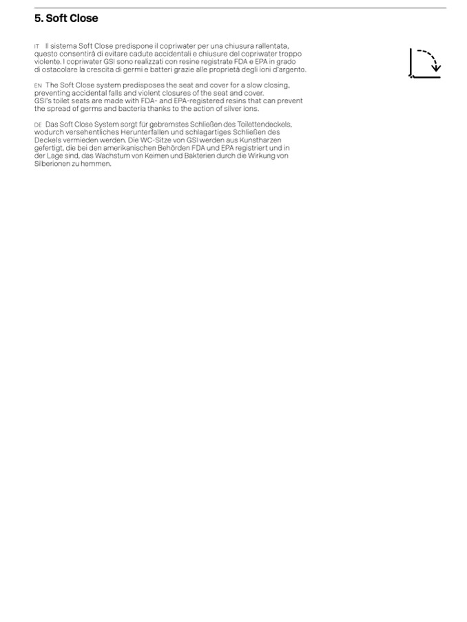 EN The Soft Close system predisposes the seat and cover for a slow closing,