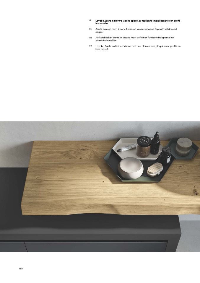 Aufsatzbecken Zante in Visone matt auf einer furnierte Holzplatte mit