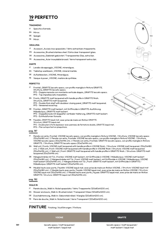 cm). // Wall unit_Front: VISONE matt lacquered with handle pro