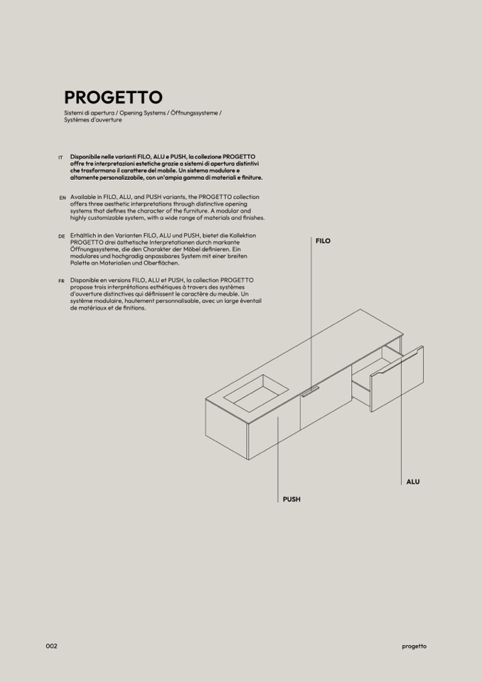 Available in FILO, ALU, and PUSH variants, the PROGETTO collection
