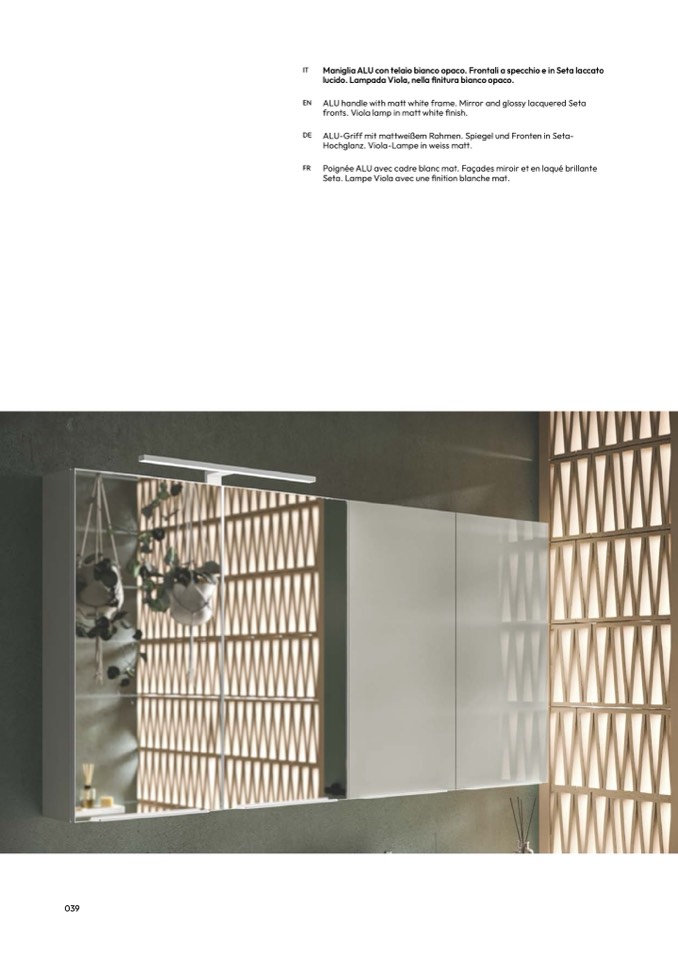 ALU handle with matt white frame. Mirror and glossy lacquered Seta
