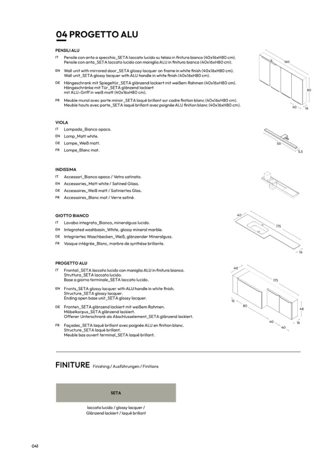 Frontali_SETA laccato lucido con maniglia ALU in finitura bianca.
