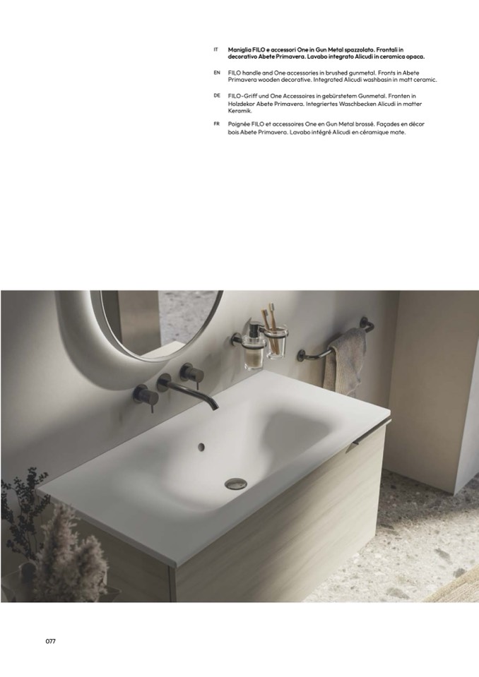 FILO handle and One accessories in brushed gunmetal. Fronts in Abete