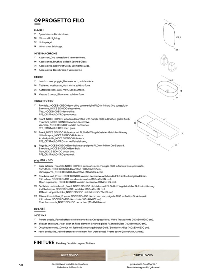Side base unit_Front: NOCE BIONDO wooden decorative with handle FILO in Brushed gilded finish.