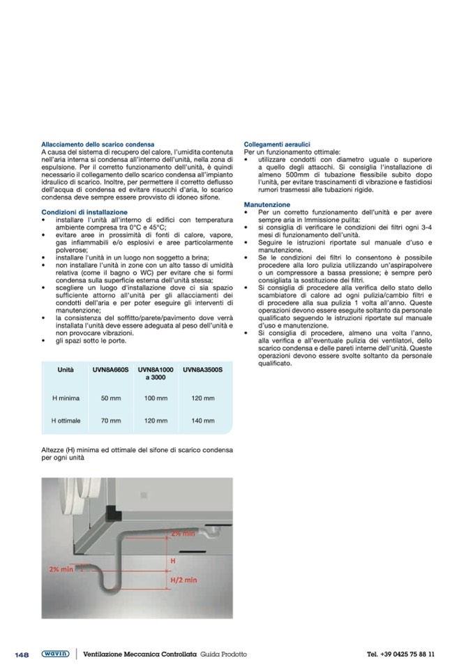 dell’acqua di condensa ed evitare risucchi d’aria, lo scarico