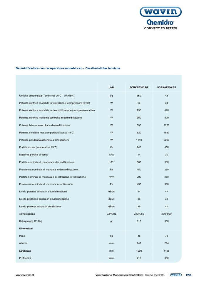 Deumidificatore con recuperatore monoblocco - Caratteristiche tecniche