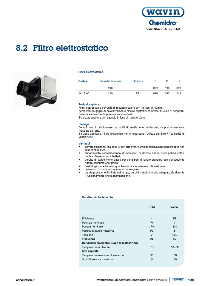 Filtro elettrostatico per unità di recupero calore con ingressi Ø160mm,