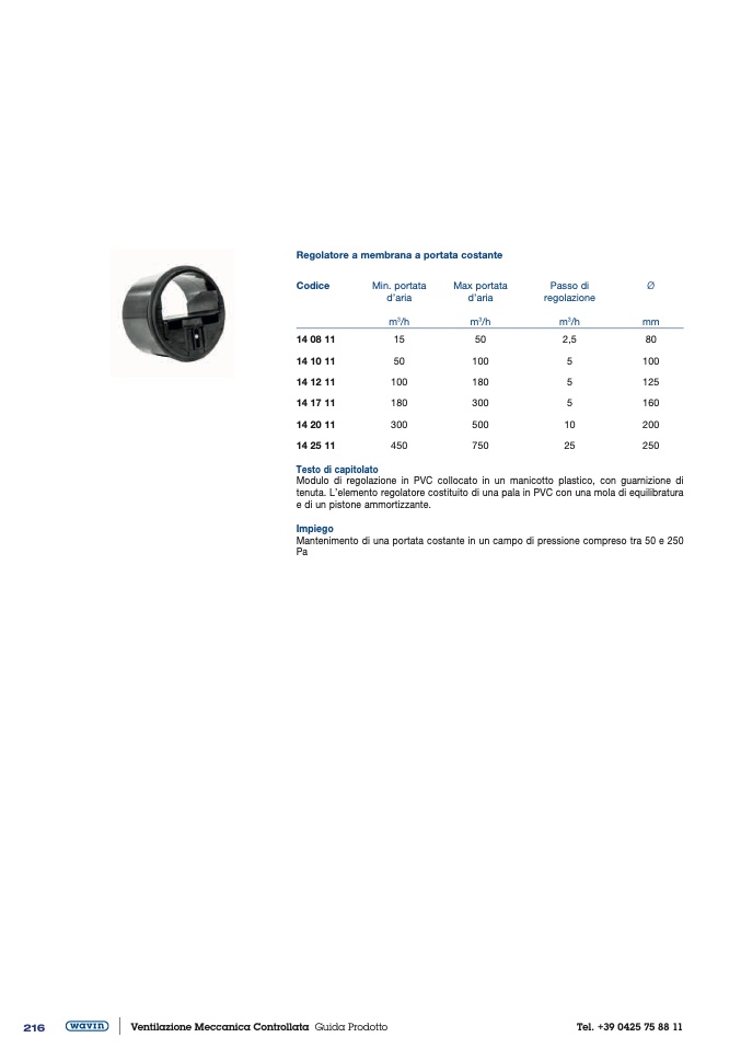 Regolatore a membrana a portata costante