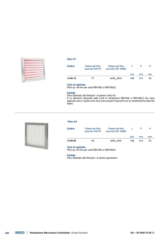 Filtro sp. 23 mm per unità REK160L e REK160LE .