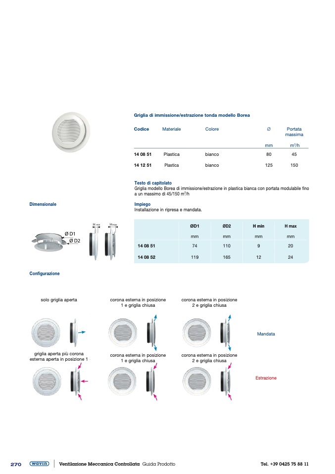 Griglia di immissione/estrazione tonda modello Borea