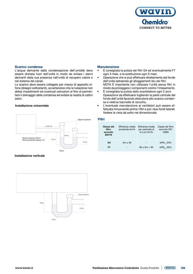 È consigliata la pulizia dei filtri G4 ed eventualmente F7