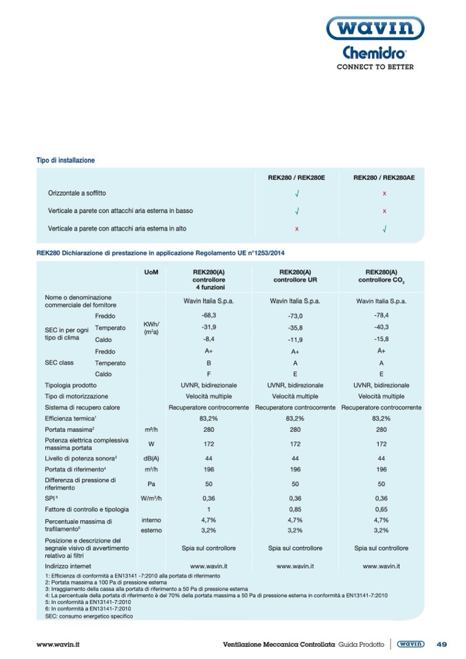 REK280 Dichiarazione di prestazione in applicazione Regolamento UE n°1253/2014