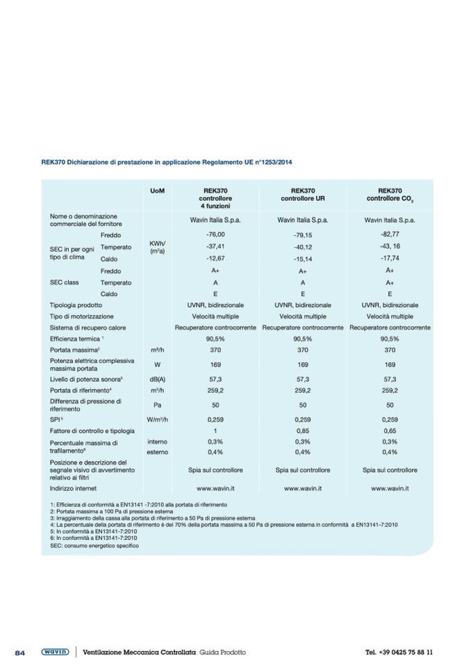 REK370 Dichiarazione di prestazione in applicazione Regolamento UE n°1253/2014