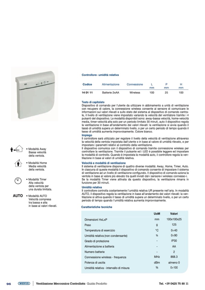 Il sistema di ventilazione dispone di quattro diverse modalità: Away, Home, Timer, Auto.