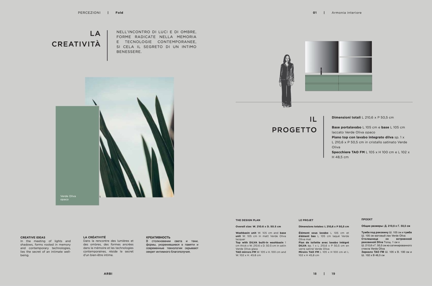 L 210,6 x P 50,5 cm in cristallo satinato Verde