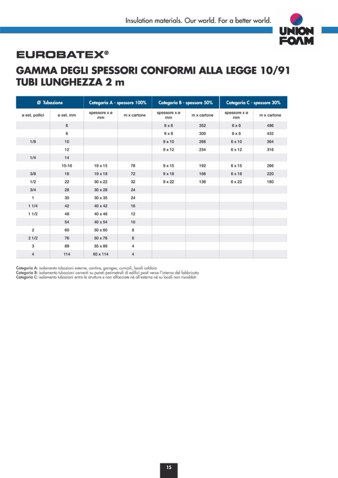 Categoria A: isolamento tubazioni esterne, cantine, garages, cunicoli, locali caldaia