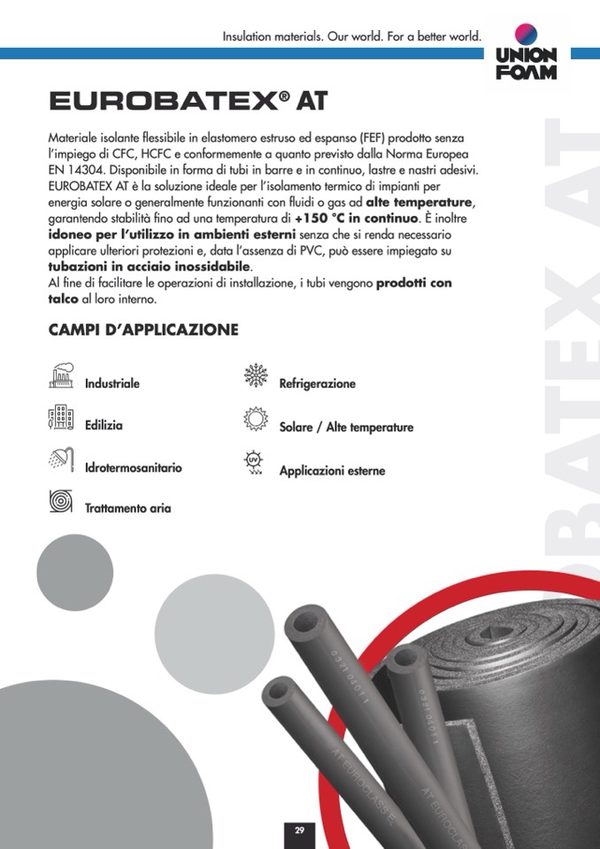 EUROBATEX AT è la soluzione ideale per l’isolamento termico di impianti per