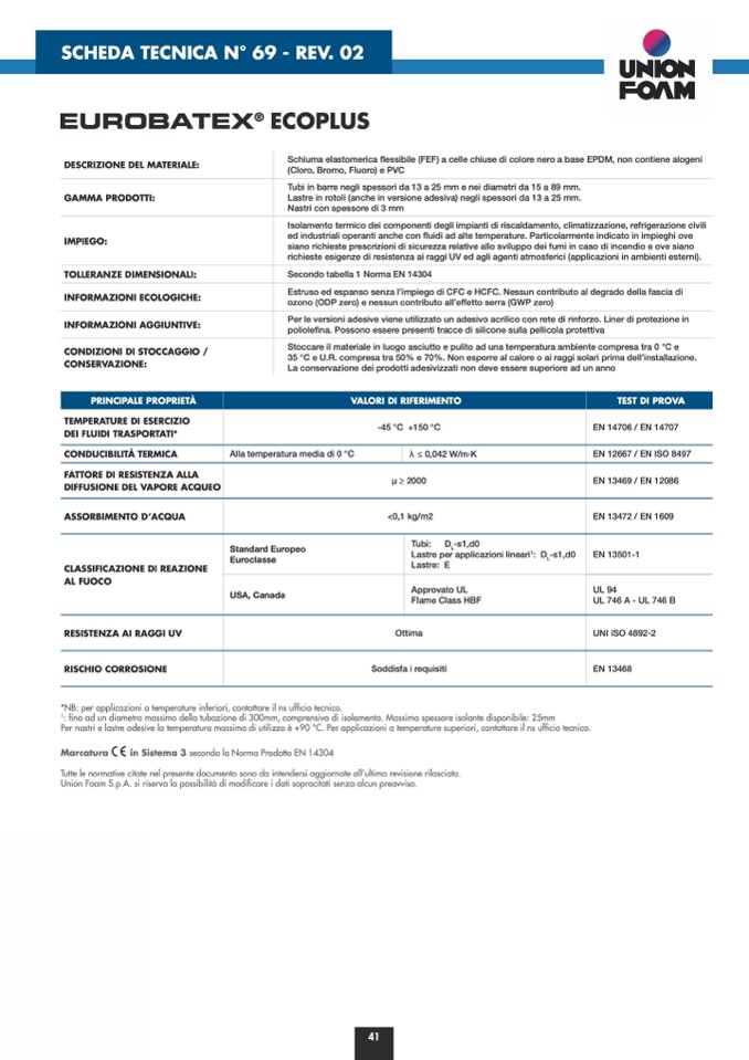 Union Foam S.p.A. si riserva la possibilità di modificare i dati sopracitati senza alcun preavviso.