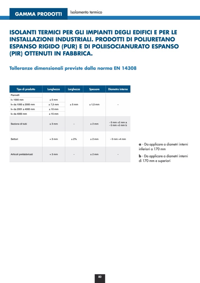 Tolleranze dimensionali previste dalla norma EN 14308