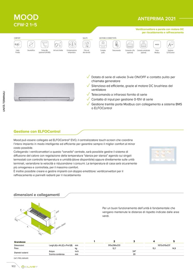 Ventilconvettore a parete con motore DC